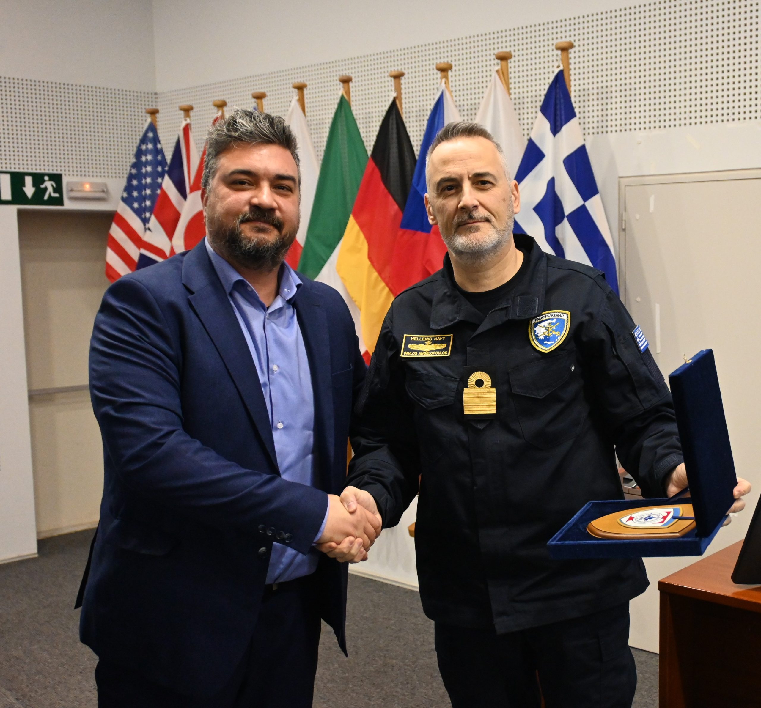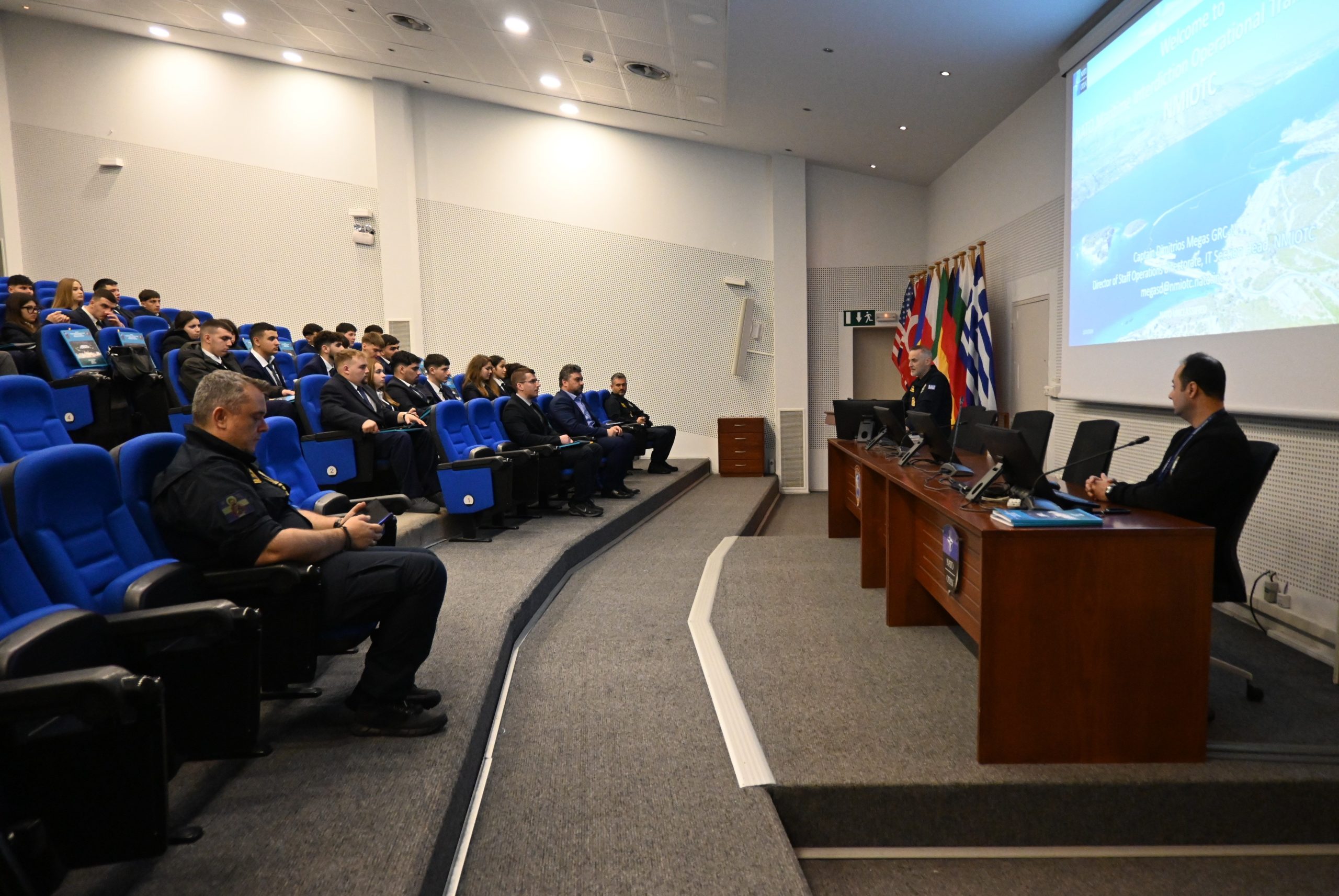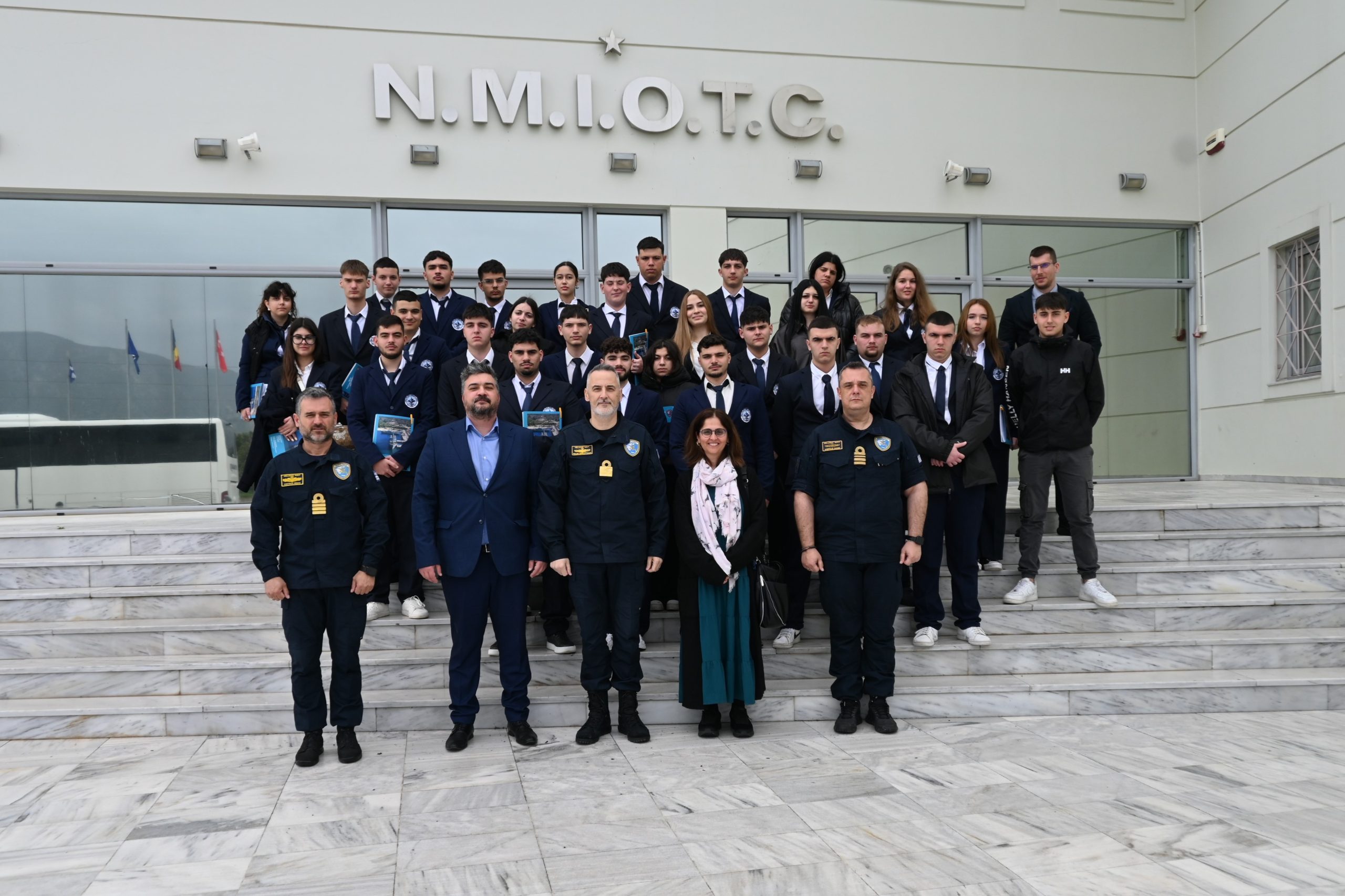 On Monday, 23 March 2026, thirty (30) 3rd Grade Students from the Chios-based Tsakos Enhanced Educational Nautical School (TEENS), led by the School Director, Mr. Michalis Xynos, visited the NATO Maritime Interdiction Operational Training Centre (NMIOTC), in the context of their educational visit to Crete.